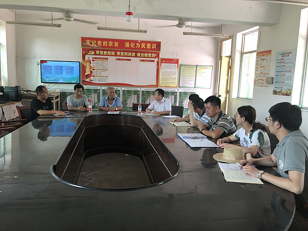 部門調研人員與富村村委干部進行深入交流