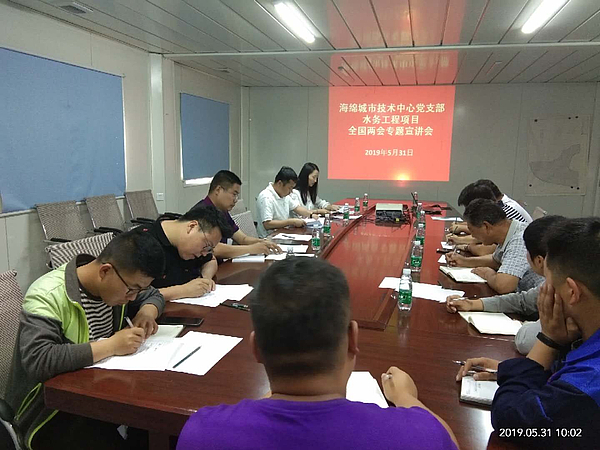 5月31日,海綿城市技術中心黨支部走進新渭沙濕地工程項目部開展水務工程項目全國兩會精神宣貫暨掃黑除惡專項斗爭宣講會,各項目施工單位、監理單位項目經理及工人代表參加會議。