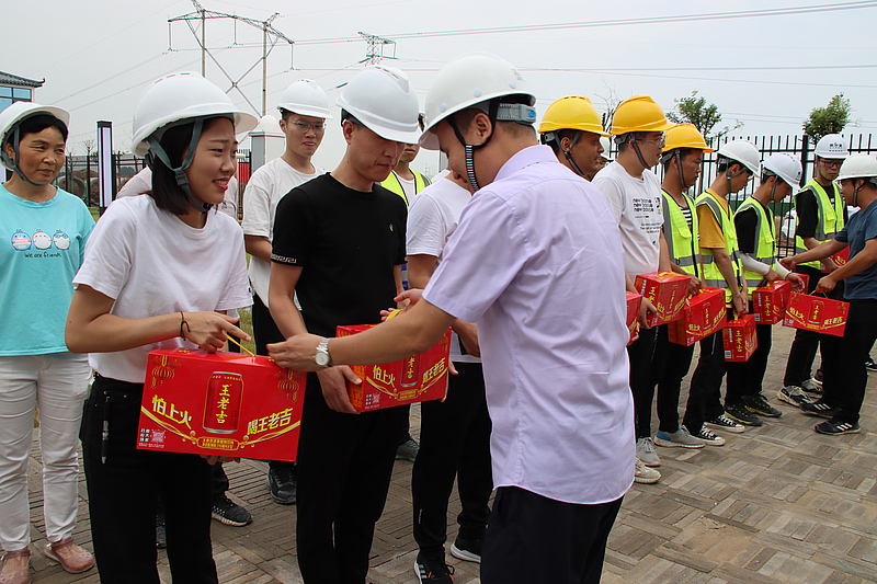會議結(jié)束后,蘇小亮帶隊赴項目現(xiàn)場慰問一線人員,向工作人員送去慰問和感謝,囑咐大家做好防暑降溫措施,合理安排工作作息,注意身體健康。