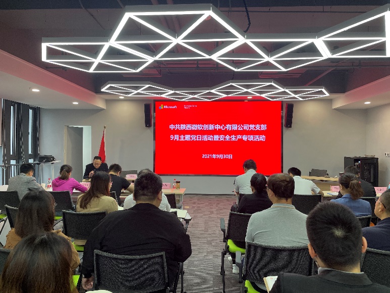 為切實筑牢安全生產防線、消除事故隱患,增強公司全體黨員干部的安全意識和應急救援、自救能力,進一步增強黨員的責任感、使命感,爭當公司安全保障工作的“先鋒”。2021年9月30日上午,陜西微軟創(chuàng)新中心有限公司黨支部組織召開“不忘初心筑牢底線,安全生產黨員先行”主題黨日活動,陜西微軟創(chuàng)新中心有限公司、陜西灃西科創(chuàng)發(fā)展有限公司全體黨員干部、入駐企業(yè)與項目合作單位代表參會。