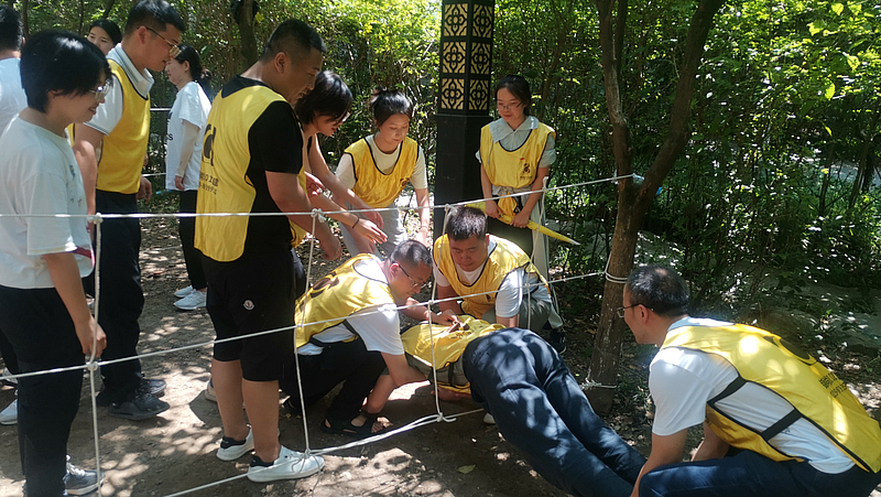 活動開場,全體黨員干部重溫入黨誓詞,在黨旗下莊嚴宣誓。公司負責人講授七一專題黨課,隨后通過多項紅色黨建體驗項目,將黨史學習與素質(zhì)拓展深度融合。在“支援前線”項目中體驗戰(zhàn)爭中物資運送的緊急與艱險,在“四渡赤水”項目中體會團隊協(xié)作、攻堅克難的力量與溫暖,在“朱德的扁擔”項目中感受革命先輩貼近群眾、以身為范的親切與擔當,在“突破封鎖線”項目中學習策略制定、人員調(diào)配的技巧與重點······
