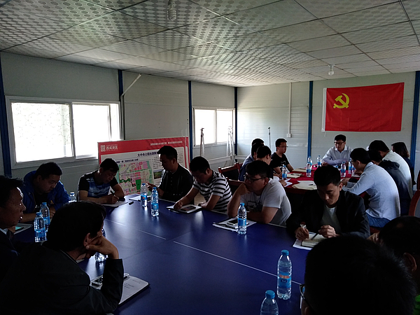 5月17日,房建工程項目管理部支部組織在灃潤和園中建七局項目部開展2018年全國人大、政協兩會宣講主題黨日活動,房建項目部全體黨員、積極分子及施工單位黨員參加會議。