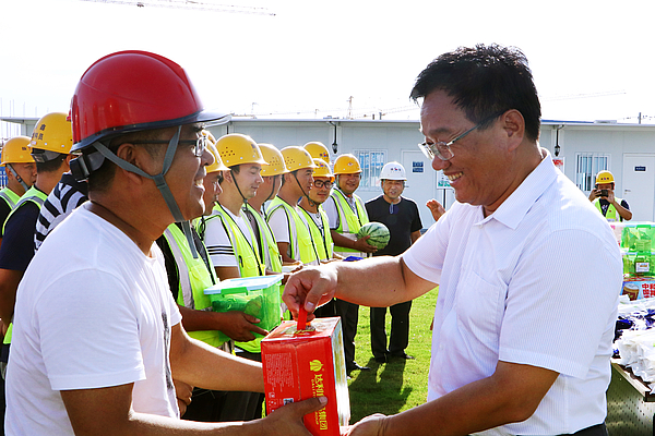 7月23日,正值“大暑”,集團黨委書記、董事長楊建柱,總經理姜勤發前往灃西第二學校、第三小學、第四學校項目工地及同德佳苑小區,看望慰問奮戰在一線的員工,為他們送去西瓜、涼茶、藥品等防暑降溫物品。