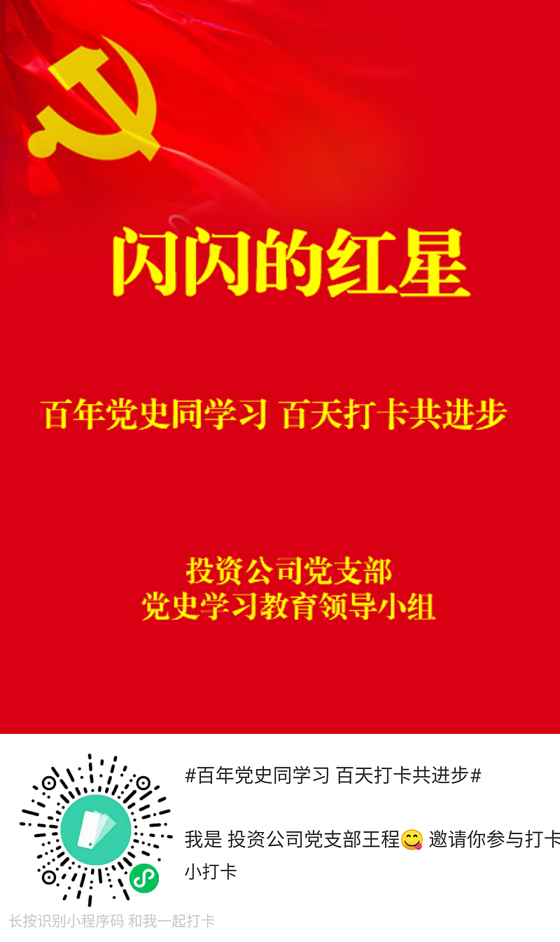 灃西集團投資公司黨支部號召青年黨員團員:與我們一同,堅持百天紅色打卡,走近建黨百年的偉大征程,感悟中華兒女的宏偉史詩。