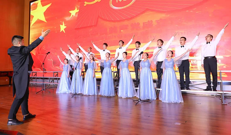 一首紅歌就是一面旗幟。“你卷走黑夜迎來晨曦,火紅的心把我們集合在一起,救國救民是你喊出的真理,中國的明天放在了我們心里……”《迎風(fēng)飄揚(yáng)的旗》《紅旗飄飄》《不忘初心》《陽光路上》等用奔騰奮發(fā)的曲調(diào),展現(xiàn)在中國共產(chǎn)黨的堅(jiān)強(qiáng)領(lǐng)導(dǎo)下,中華民族實(shí)現(xiàn)了從站起來、富起來到強(qiáng)起來的偉大飛躍,表達(dá)出灃西人堅(jiān)定不移跟黨走,拼搏奮進(jìn)新時(shí)代的使命。