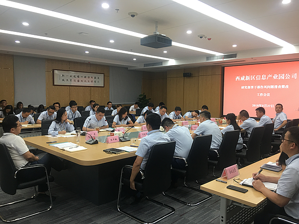 當日晚上,新城干部作風排查整改工作動員部署大會結束后,公司立即組織召開干部員工內部會議,迅速傳達了會議精神和新城相關工作方案,要求迅速成立工作領導小組,扎實開展干部作風排查整改工作,隨后各部門、各子公司立即召開內部會議,排查在作風方面存在的問題,形成問題清單逐一安排整改,實行銷號管理,并第一時間公布新城舉報電話,全面接受入園企業(yè)的監(jiān)督。