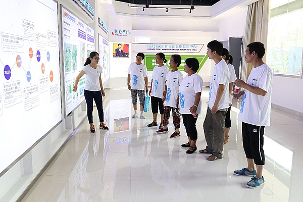 幫扶對象先后參觀了灃西新城雙創展廳和海綿城市技術中心展廳、中心綠廊等特色建設項目,了解新城開發建設先進理念,體驗人工智能先進科技產品,感受城市綠色基礎設施和生態宜居環境。通過展廳講解人員的耐心講解,貧困群眾對新城建設頗感興趣,對新城未來發展充滿憧憬與期待。