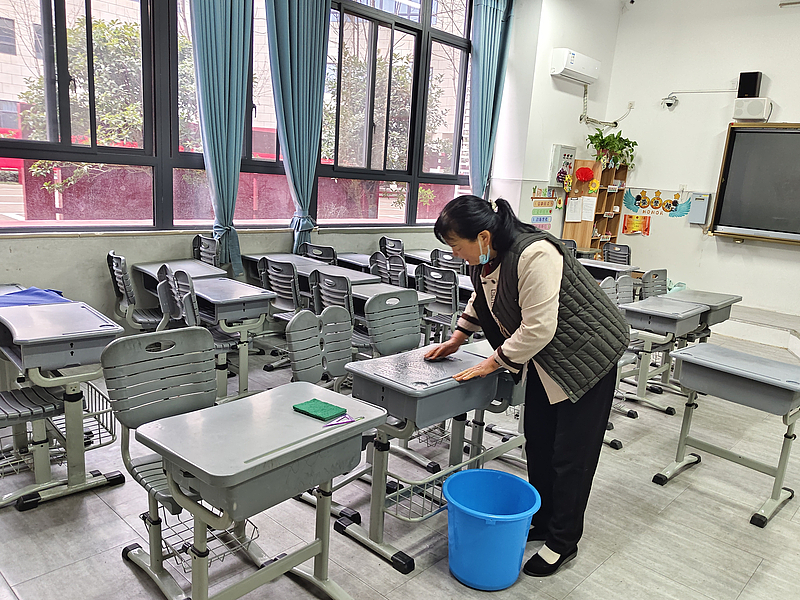 整潔的校園環(huán)境是提供優(yōu)質(zhì)物業(yè)服務(wù)的基礎(chǔ)職責(zé),但要真正落實(shí)好,還要在細(xì)節(jié)上下足功夫。擦過的課桌纖塵不染,垃圾桶垃圾日產(chǎn)日清,夠得著的地方絕不留灰,夠不著的地方有雜物便想辦法用長(zhǎng)柄掃把挑出,蹲著將地面殘留污漬一遍又一遍的擦洗......學(xué)校片區(qū)員工們“愛校如家”的精神,換來了學(xué)校日復(fù)一日的優(yōu)美環(huán)境。