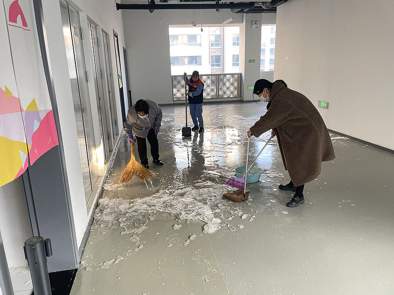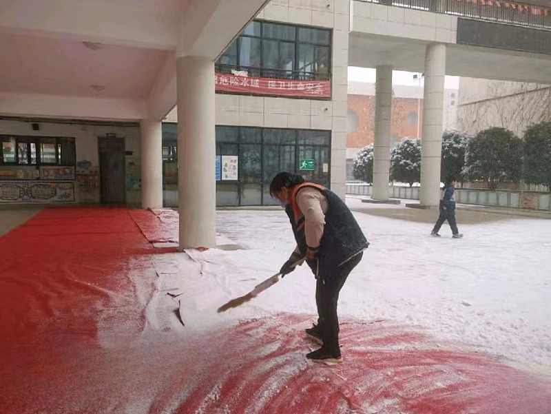作為校園服務(wù)管家,片區(qū)工作動(dòng)態(tài)性強(qiáng),每一項(xiàng)服務(wù)都有很強(qiáng)的時(shí)效性要求,特別是一些突發(fā)天氣情況。1月16日,2024年第一場(chǎng)大雪如期而至,服務(wù)公司學(xué)校片區(qū)迅速組織各業(yè)務(wù)口工作人員開展除雪保暢活動(dòng)。大家齊心協(xié)力,合作分工,在教學(xué)樓各大廳門口鋪設(shè)防滑墊,使用干拖布及時(shí)打掃腳底帶入的水漬,防止有學(xué)生因地面濕滑而摔倒,并迅速清理出校園主干道。第二日上班前,再次將校內(nèi)有薄冰的地方和道路殘留積雪進(jìn)行細(xì)致清理,全力確保師生方便通行,保障校園安全。