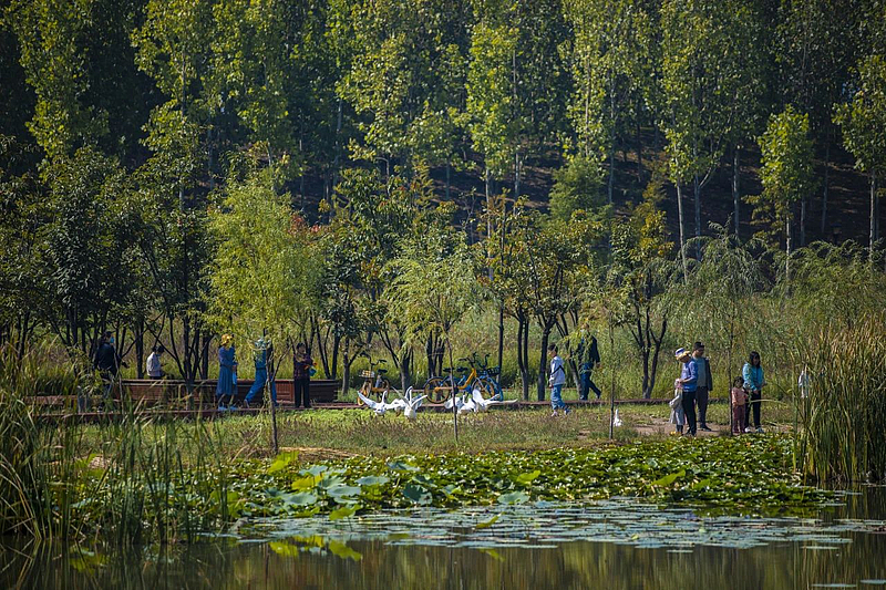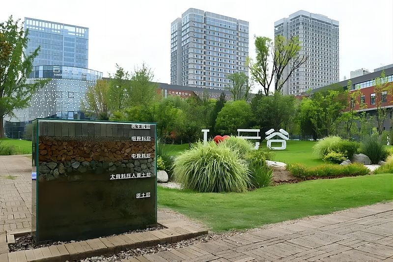 目前,灃西新城已建成設(shè)海綿型園區(qū)390萬平方米、道路110余公里、公園綠地380萬平方米,累計推廣面積超2000萬平方米,雨水徑流控制率達到86.5%,雨水資源化利用率達到12.64%,同時地下潛水位回升了3.43米。城市“熱島效應(yīng)”也有所緩解,同一時期灃西新城海綿城市建設(shè)試點區(qū)域的平均氣溫比相鄰區(qū)域大約低了2℃,“小雨不積水、大雨不內(nèi)澇、熱島有緩解”的目標(biāo)已經(jīng)成為現(xiàn)實。
