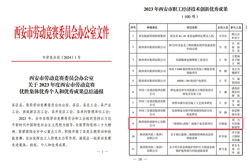近日,西安市勞動競賽委員會辦公室公布“關于2023年度西安市勞動競賽優勝集體優秀個人和優秀成果總結通報”,由陜西微軟創新中心有限公司(以下簡稱“陜西MIC”)研發的“秦創原+消防”創新產業發展項目榮獲“2023 年度西安市職工經濟技術創新優秀成果”。