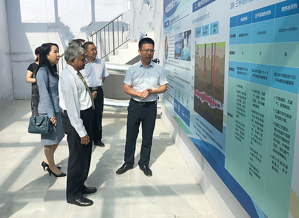 會上,能源公司主要負責同志對灃西新城的綠色發展情況、新能源項目建設情況以及中深層地熱能技術原理及優勢進行了介紹。
