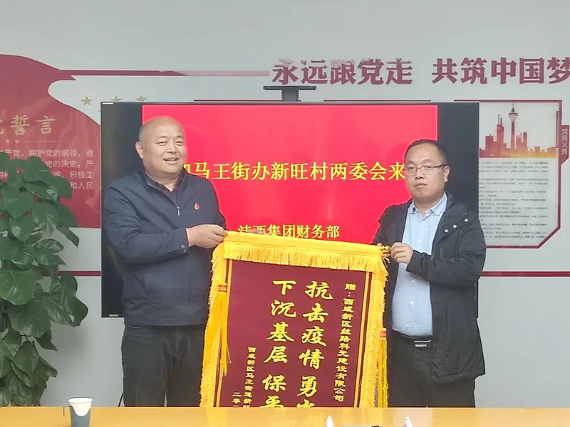 4月2日,灃西新城馬王街道新旺村總支部書(shū)記、村委會(huì)主任葛東武代表“兩委”班子和村民,分別向?yàn)栁骷瘓F(tuán)財(cái)務(wù)部、科元公司送來(lái)寫(xiě)有“鼎力相助勇?lián)?dāng) 風(fēng)雨同舟抗疫情”“抗擊疫情勇當(dāng)先 下沉基層保平安”的錦旗,并向集團(tuán)下沉干部頒發(fā)榮譽(yù)證書(shū),感謝他們?cè)谝咔榉揽仄陂g為保障新旺村群眾生命安全所做的貢獻(xiàn)。灃西集團(tuán)總經(jīng)理助理、財(cái)務(wù)部部長(zhǎng)王莉和科元公司下沉干部代表一起接受錦旗,并和新旺村“兩委”班子座談交流。