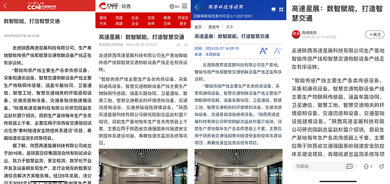 陜西高速星展科技有限公司成立于2016年,是陜西交控集團混合所有制試點企業,致力于智慧監測、安全檢測、數字化平臺開發及設備研發和生產,是行業領先的智慧交通綜合解決方案服務商。經過6年發展,該公司于2022年打造了“交控智造·秦創原生產基地”,并落戶灃西新城西部云谷三期。