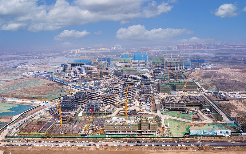 作為秦創原創新驅動平臺總窗口先行起步區,秦創原生態科創島項目施工現場形成了燈火通明、大干快上的火熱建設場面,機械轟鳴聲、車輛鳴笛聲、建材碰撞聲交織在一起,奏響了春天最強勁的樂章。